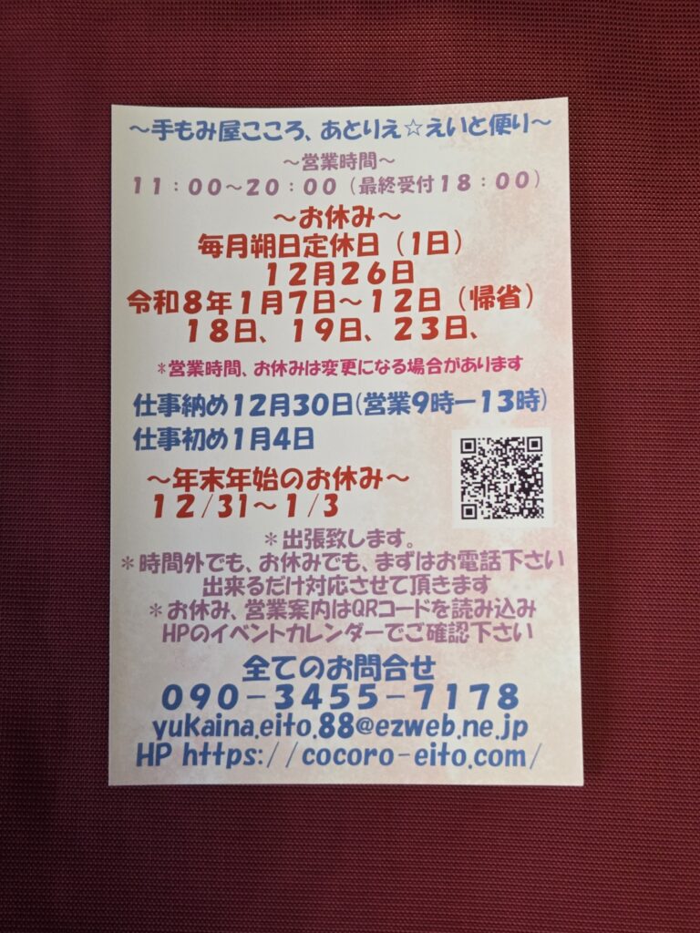 今年一年『手もみ屋こころ』をご愛顧いただきありがとうございました